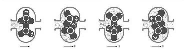 两叶转子:适合于输送含有中小颗粒物料的介质,对中小颗粒物料的破碎率相对较低,略有脉动,容积置小于三叶转子。